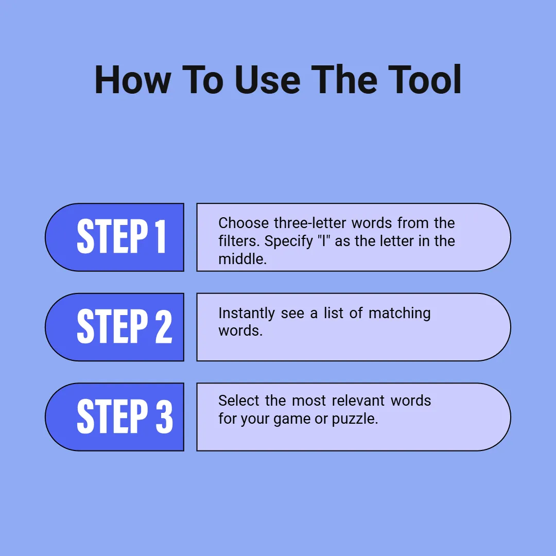 You can easily choose the appropriate word from the extensive list provided by the Three Letter Words with ‘I’ in the Middle tool using the advanced filters and sorting options. You can specify the starting and ending letters, as well as the word lengths, to refine your search. Additionally, you can organize the list either alphabetically or by reverse alphabetical order or based on each word’s scoring points.